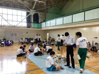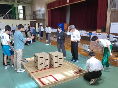 夏休みから試行錯誤しながらロボット制作に取り組んできた生徒たち。当日も、それぞれの部門の課題に一生懸命挑戦しました。