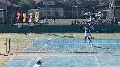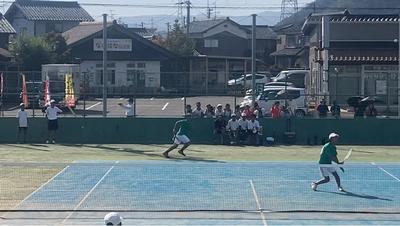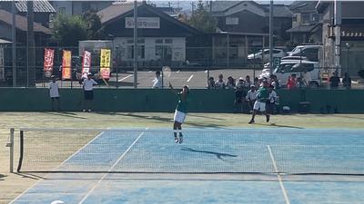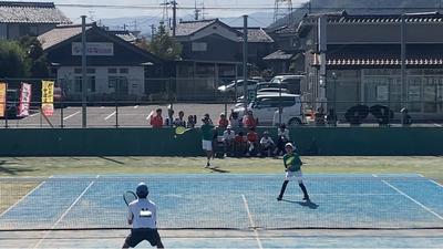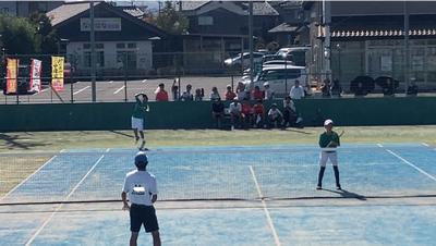 本校の男子ソフトテニス部も出場し、団体戦一回戦は福大附属義務教育学校との対戦でした。