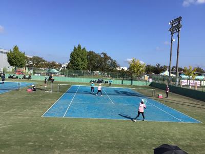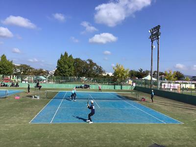 武生中央公園テニスコートで行われているソフトテニス競技。