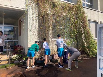 国高公民館ボランティアに3年生が参加しました。グリーンカーテンの撤去や周辺道路の草取りなど、地域の方と一緒になって作業しました。誰かに言われた訳でもないのに、自分たちの故郷を綺麗にしようとする姿が尊いですね。