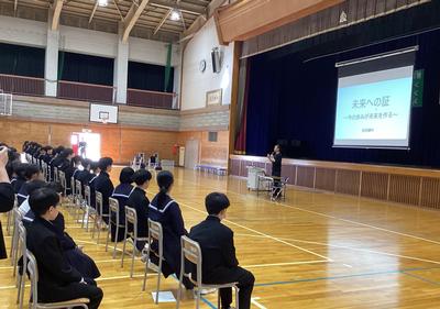 「未来への証~今の歩みが未来を作る~」という演題で、自分に与えられた「自由な時間」を何に使うのか、「自分の強み」の作り方、人生の分岐点で「念い(おもい)」と向き合い自分で決める大切さ、「人生はみんな平等ではない、自分からチャンスを取りに行くこと」、などについてお話をいただき、生徒たちにも保護者の皆さんにも心に強く残った言葉がたくさんあったようです。