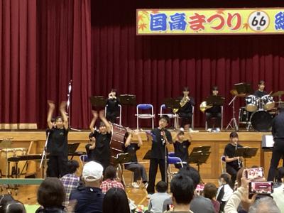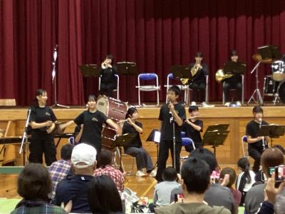 開会式前の約30分間、アニソンメドレーやジャンボリーミッキーなど、誰もが盛り上がる曲を演奏しました。最後には童謡ふるさとを演奏し、会場みんなで大合唱になりました。将来も地域の一員として、ふるさとを盛り上げていってくださいね。