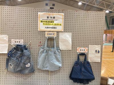 また、「豊かな生活を創るアイデアバッグコンクール」で最優秀賞を受賞した本校1年生の作品も展示されていました。