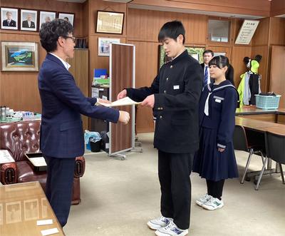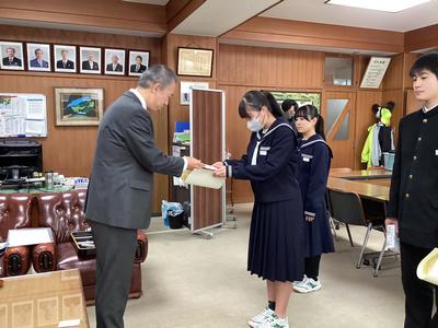 武生税務署長様、南越地区納税貯蓄組合連合会長様が本校に来校され、校長室で表彰が行われました。