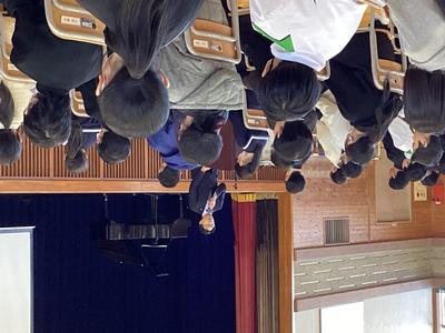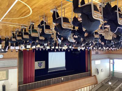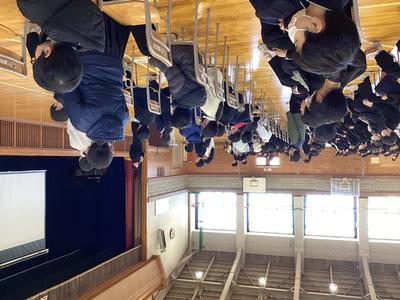校長先生からは、2学期の生徒たちの活躍について振り返るとともに、今年、ノーベル生理学・医学賞を受賞した坂口志文さんが、研究者として大成できた要因として挙げた「運・鈍・根」を紹介したお話がありました。運も大切ですが、「失敗しても次また頑張ればいいや」という鈍感さ、そして粘り強く努力する根気強さ。2学期、うまくいかなかったなあと思うことがあったとしても、さらなる成長を目指して、3学期も頑張っていきましょう。