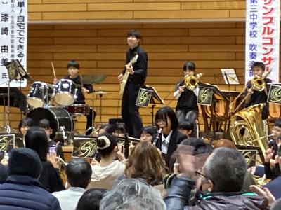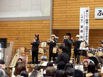 2月1日(日)に国高地区「ふるさとづくり大会」が国高公民館にて行われ、開会式で、本校の吹奏楽部が地域の方々に演奏を披露しました。「銀河鉄道999」で華々しくオープニングを飾り、「ミッキーマウスマーチ」で楽器紹介、そして「昭和歌謡コレクション」など幅広い年齢層の方々に楽しんでいただけるような曲目で会場を盛り上げました。地域の方々から温かい拍手をいただき、とても楽しく心温まるステージとなりました。