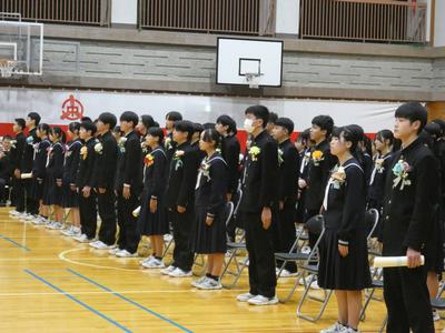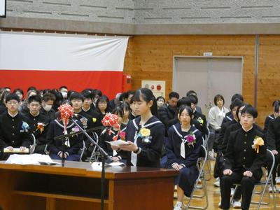校長式辞や市教育委員会からの励ましの言葉を真剣なまなざしで聞いていた卒業生たち。卒業生代表の答辞では、感極まる場面もありました。