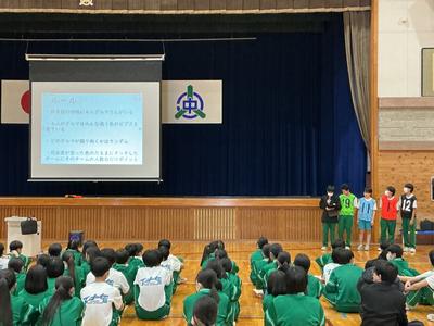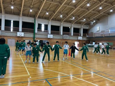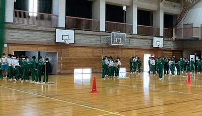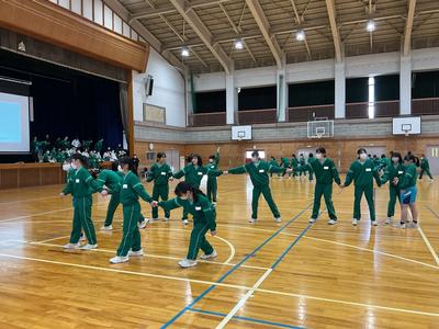 今年度もとうとう残りわずかとなりました。1年生は、クラスの仲間と協力して楽しい思い出をつくり、さらに学年全体での親睦を図るため、学年レクリエーションを行いました。リーダーたちがルール説明などを行い、「手つなぎ だるまさんがころんだ」と「モップリレー」をクラス対抗で競い合いました。一年間、同じクラスで過ごしてきた仲間たちを応援しながら、笑い声もいっぱい聞こえる楽しいイベントになりました。