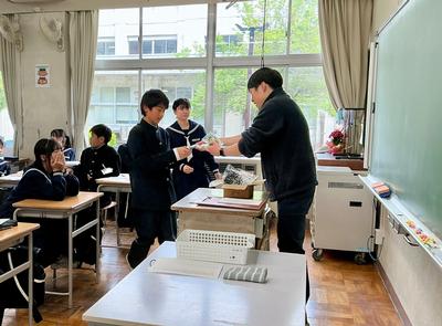 越前交通安全協会国高分会様より自転車用のワイヤーロックをいただき、1年生の自転車通学生に配付しました。