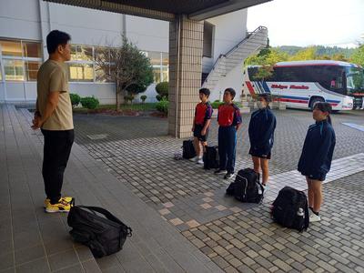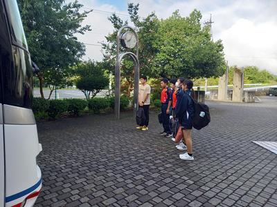 バドミントン部に続いて、卓球部も全員元気に学校を出発しました。