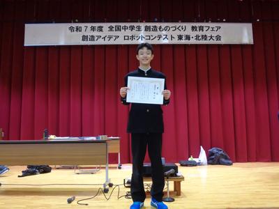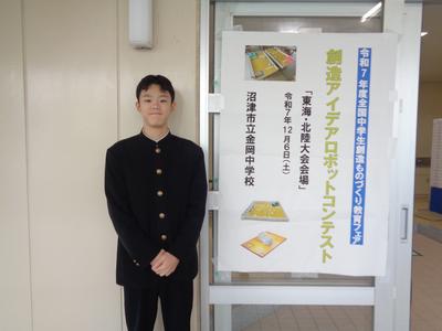 12月6日(土)、東海・北陸地区中学生創造ものづくり教育フェア静岡大会、創造アイデアロボットコンテスト東海・北陸大会が静岡県沼津市金岡中学校で開催されました。本校からは、『やーまンポテト』チームが参加しました。福井県大会で出た課題を修正し、予選リーグではパーフェクトを出すなど、予選1位で決勝トーナメントに進出しました。決勝トーナメントでは苦しい試合を勝ち上がりましたが、準決勝では優勝したチームに僅差で負けてしまいました。しかし、3位決定戦では接戦を制し、見事に3位となり、全国大会出場を決めました。武生第五中学校としては、2年連続全国大会出場です。チームが一人でプレッシャーもあったと思いますが、その中で自分のできるベストパフォーマンスを発揮した結果だと思います。次は、令和8年1月31日(土)東京都立六郷工科高等学校で行われる全国大会です。頑張れ!やーまンポテト!