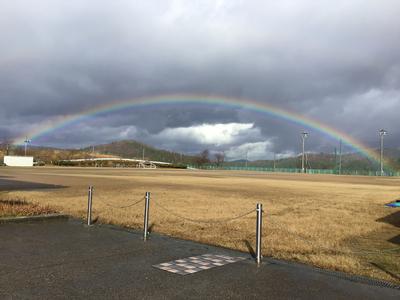 本日12:30頃、本校グラウンド側に大きな虹がかかりました。グラウンドから出ているのかと思うくらい、近くに見えました。虹を見るといいことがあるとか願い事が叶うなどとよく言われますが、五中の生徒たちにも、これからどんどん素敵な出来事が起こる予感がしますね。