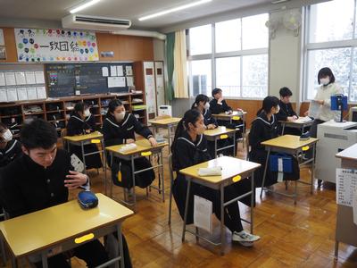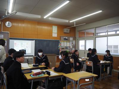 1月22日(木)6限目に栄養職員の先生に来ていただき、2年生が「スポーツと栄養」に関する学習を行いました。筋力やスピード、持久力を高めるにはタンパク質や脂質、ケガ予防や疲労回復にはビタミン、活動前にエネルギーを蓄えるには炭水化物など、各栄養素がどんな働きをしているかを学びました。また、運動時に飲むことが多い清涼飲料水には砂糖が多く含まれており、飲む量や濃さにも注意が必要だということも学びました。中学生は、部活や体育の授業など体を動かす機会が多いので、今日学んだ事を意識した食事を摂り、丈夫な体を作っていきましょう!