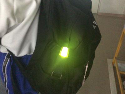 頂いたグッズをカバンに付けることで、暗がりでの安全性が高まりますが、