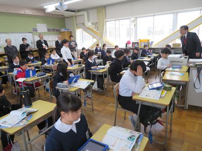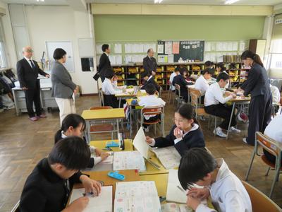 越前市教育委員の皆様が訪問され、全クラスの授業を参観されました。