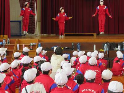 また、6年生は跳び方のお手本を1年生に見せていました。