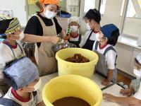 1年生は初めて見る手作りお味噌に興味津々!