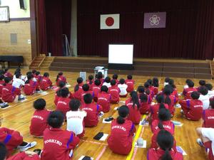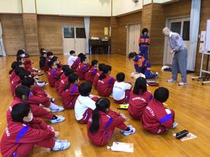 中消防署と越前市消防団の方々に来ていただき、かけがえのない命のために私たちができることについて学習しました。
