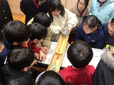 後半は、児童が実際に実験をすることでダムの必要性を学ぶことができました。